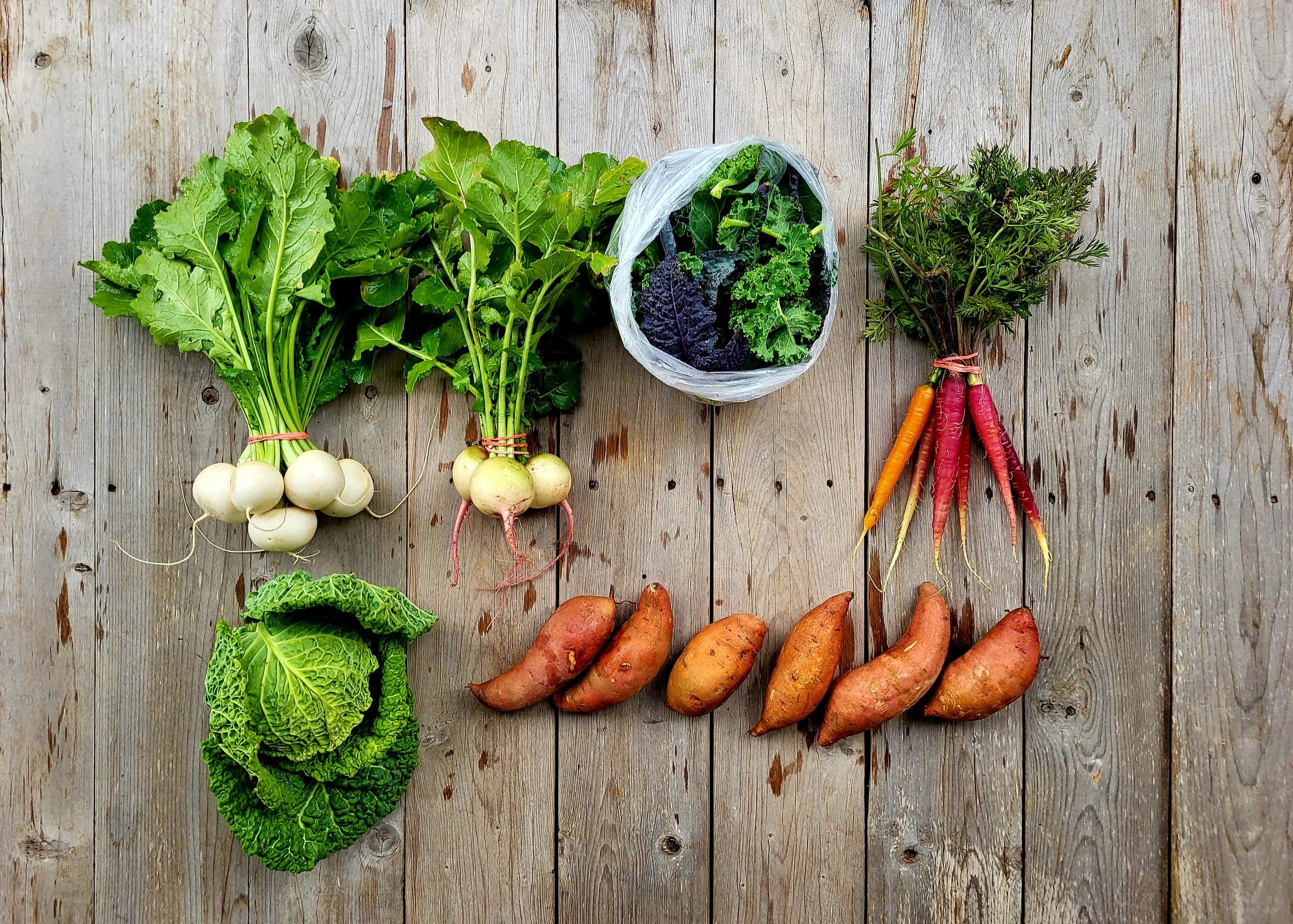 Hakurei turnips, broccoli, bagged kale/collard, cabbage and sweet potatoes